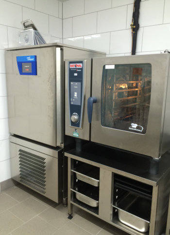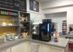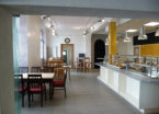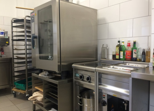 Praktizierte Nachhaltigkeit / Modernisierung mit Rücksicht auf die Historie des 105 Jahre alten Gebäudes Wir haben mehr als zwei Jahre am Umbau des ehemaligen Backshops zu einem Café gearbeitet. Zuerst in den Kellerräumen mit der Schaffung von Lagermöglichkeiten und dem Einbau eines energieeffizienten Tiefkühl- und Kühlhauses, dessen Abwärme aus der Kälteerzeugung direkt wieder in den Heizkreis übernommen wird. Die Damen- und Herren-Toiletten fanden dabei ebenso Platz, wie eine zweite Küche für die Zubereitung der vielfältigen Speisen. Im August 2015 wurden dann die Erdgeschossräume in Angriff genommen und dabei aus dem ehemaligen Lagerraum, der 1912 bei der Eröffnung des Bahnhofs noch der Wartesaal der I. und II. Klasse war, ein gastfreundlicher Raum geschaffen, der dem Stil des Erbauerjahres nachempfunden wurde. Die historischen Stuckdeckenelemente und der Eukalyptusparkett wurden in aufwendiger Kleinarbeit wieder freigelegt und saniert. Um den Ansprüchen an eine moderne Küchentechnik gerecht zu werden, wurde hinter dem Thekenbereich eine Zubereitungsküche eingerichtet, mit einer großen Spülstrasse, Kühl- und Tiefkühlmöglichkeiten, einer Belagstation, einer Saladette, Koch und Warmhaltemöglichkeiten und nicht zuletzt eines modernen Kovektomaten für enegieeffizientes und gleichzeitig vitaminschonendem Kochen, Backen und Grillen. Die Kühlelemente im Thekenbereich werden alle über eine Zentralkühlung versorgt, die das Höchstmaß an Energieeffiziens bietet. Um dem Anspruch auf Nachhaltigkeit gerecht zu werden, sind die Leuchtkörper der Lampen alle mit LED-Technik ausgestattet. Einen großen Teil unseres verbrauchten Stroms erzeugen wir selbst durch ein seit drei jahren betriebenes Blockheizkraftwerk.